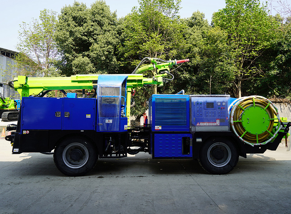 UPS-20J礦用混凝土噴射車是針對(duì)礦山及中小斷面地下工程噴漿支護(hù)作業(yè)研發(fā)的專用設(shè)備,最大噴射方量可達(dá)20m3/h,廣泛適用于礦山、引水洞、斜井等中小型地下工程混凝土噴射支護(hù)作業(yè)。